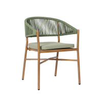 Wholesale Rope Chair Aluminum Frame Wooden Effect Outdoor Weaven Dining Chair